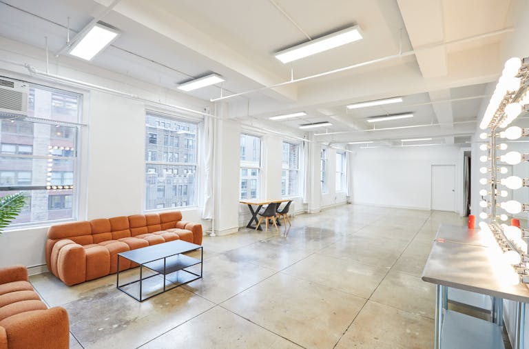 In the center of Manhattan's Garment District, this bright and roomy photo and video studio offers stunning views of the city.