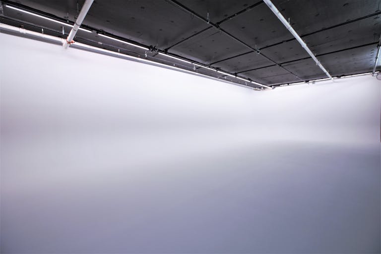 The pure white backdrop creates the perfect space for film and video production, photography, and creative projects of all kinds.