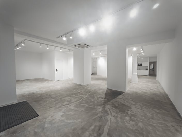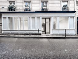 Covering 130 m², the space features a prominent 12-meter-wide street-facing window, ensuring excellent visibility with dual exposure. With 3.2-meter-high ceilings, the gallery also includes a fully equipped professional kitchen, complete with a 50 cm diameter extraction system.
